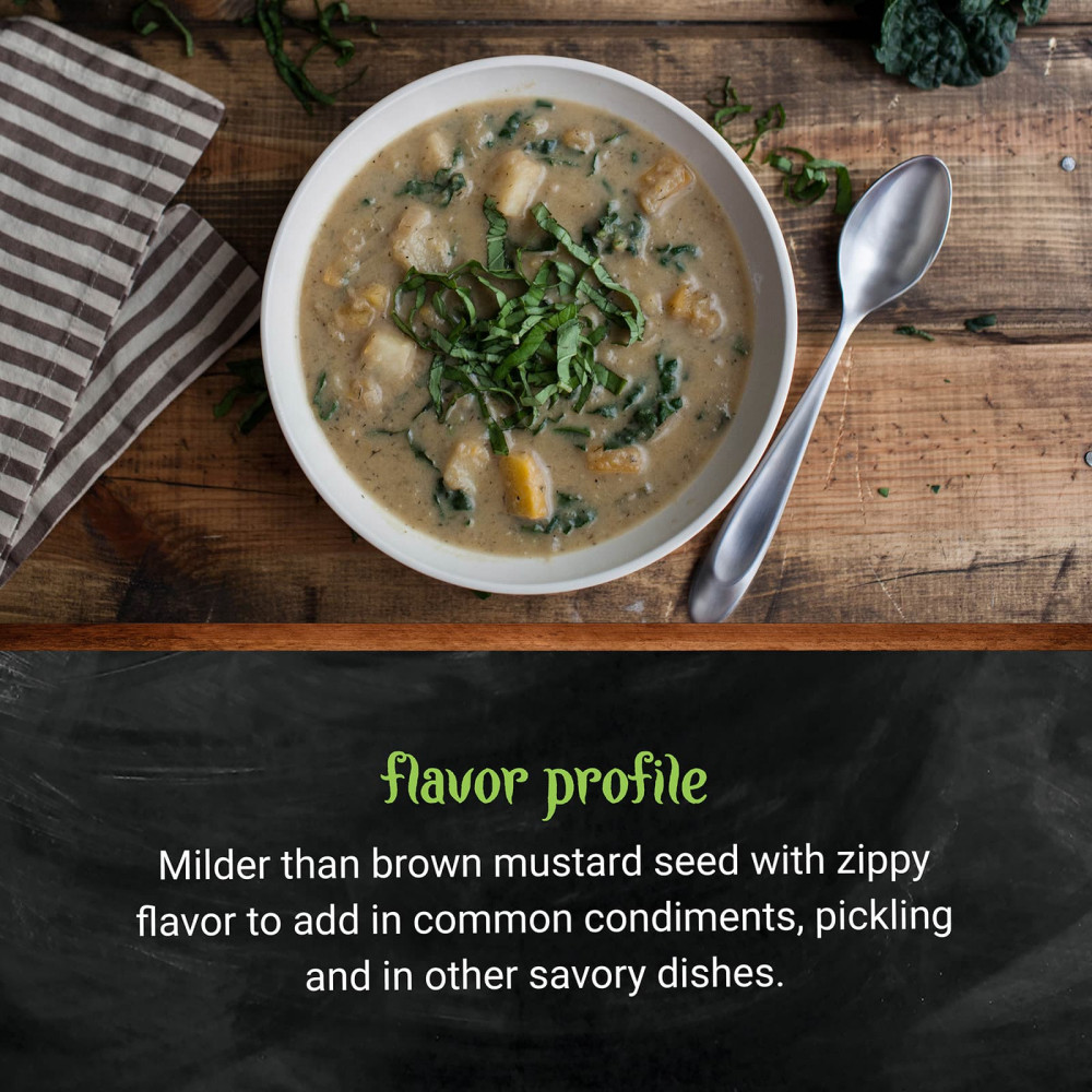 Семена желтой горчицы Frontier®, наиболее известные в качестве готовой приправы («примерная горчица»), придают пряность во время приготовления. Оно мягче, чем семена коричневой горчицы, хотя их можно использовать попеременно. Молотые семена желтой горчицы придают пикантный вкус приправам, маринадам и другим пикантным блюдам.