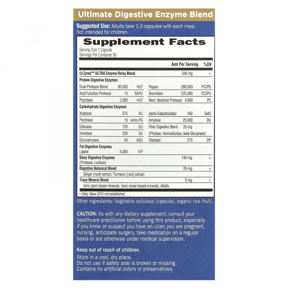 Содержит 21 вегетарианский фермент, омега Zyme Ultra™ способствует полному перевариванию белков, углеводов и жиров в пище, помогая раскрыть их питательную ценность.