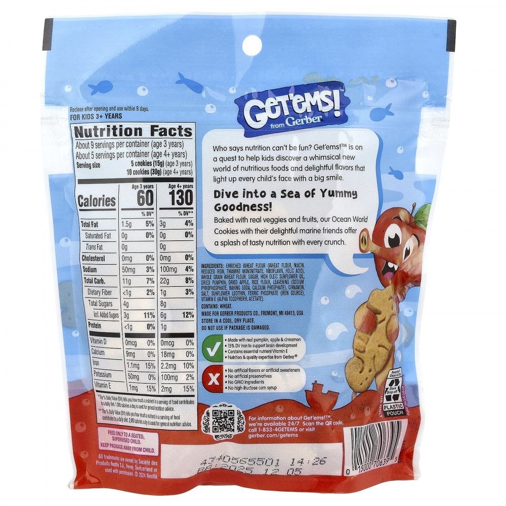 Наше печенье Ocean World, запеченное с настоящими овощами и фруктами, вместе со своими восхитительными морскими друзьями предлагает массу вкусных питательных веществ при каждом хрусте.