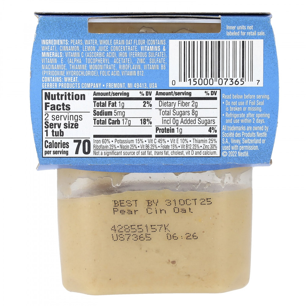Gerber® сочетает в себе высококачественную цельнозерновую добавку с 11 необходимыми питательными веществами: от витаминов C и E до цинка и железа для поддержки развития и обучения мозга.