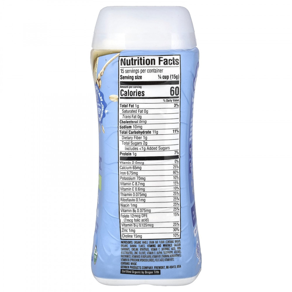 Органическая цельнозерновая овсяная мука (содержит пшеницу), органические банановые хлопья.