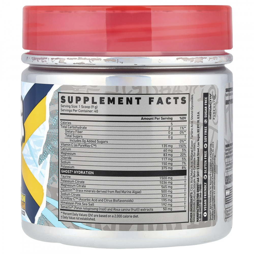 Смешайте каждую мерную ложку (порцию) GHOST® HYDRATION с 12–14 унциями воды или напитка по выбору. Варьируйте количество жидкости по вкусу. Принимать во время или после тренировки в дни тренировок или в течение дня в качестве электролитного средства для утоления жажды.