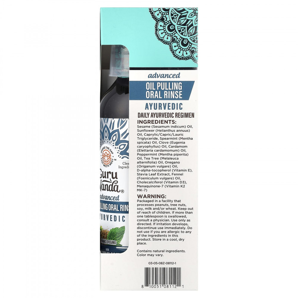 Хорошо встряхните перед использованием. Поместите в рот 10–15 мл улучшенного ополаскивателя для полости рта GuruNanda® для вытягивания жира. Осторожно полощите зубы в течение не менее 2 минут. Попробуйте использовать до 10 минут для каждого использования. Сплюньте в мусорное ведро и тщательно прополосните рот водой. Не глотать. Всегда чистите зубы ПОСЛЕ использования масла для вытягивания. При проливе средства на ткань немедленно удалите его, чтобы не оставлять пятен. Аюрведа рекомендует очищающее средство для языка в качестве дополнительной оздоровительной практики.