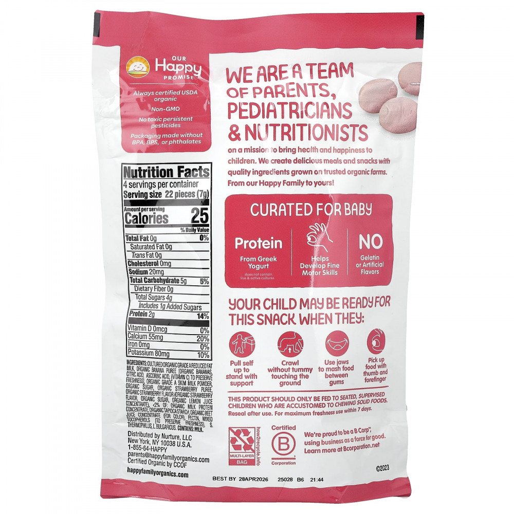 Культивированное органическое молоко класса А с пониженным содержанием жира, пюре из органических бананов [органические бананы, лимонная кислота, аскорбиновая кислота (витамин C) для сохранения свежести], органическое сухое обезжиренное молоко класса А, органический сахар, органическое клубничное пюре, органический клубничный ароматизатор (органический клубничный ароматизатор, органический сахар, концентрат органического лимонного сока), < 2% концентрата органического молочного протеина, органический тапиоковый крахмал, концентрат органического сока свеклы (для цвета), пектин, смешанные токоферолы (для сохранения свежести), S. thermophilus, L. bulgaricus.