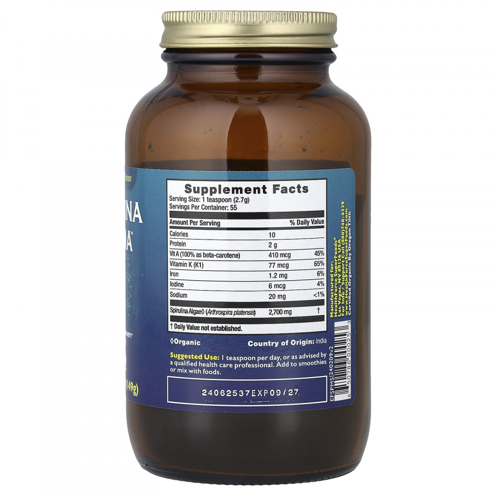Порошок из спирулины (Spirulina manna) представляет собой сине-зеленые микроводоросли (Arthrospira platensis) в форме спирулины. Спирулина считается одним из первых в мире суперфудов, известных своим невероятным содержанием питательных веществ широкого спектра. Спирулина веками использовалась в качестве традиционного продукта коренными народами как Африки, так и Мезоамерики. По сей день спирулина используется в качестве традиционного продукта, который женщины собирают у озера Чад в Африке для борьбы с недоеданием. Оригинальные мультивитамины Earth.