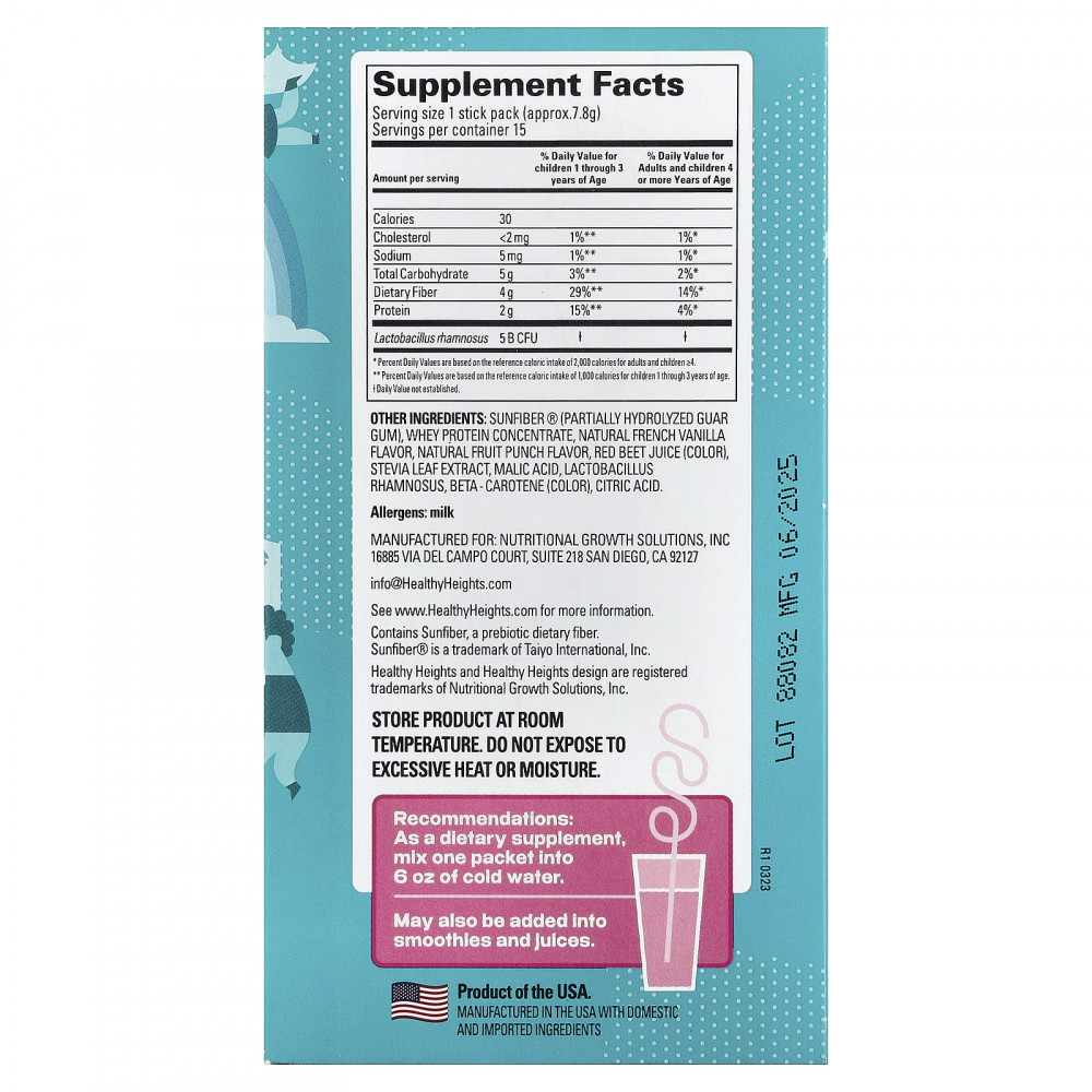 Смесь пребиотической и пробиотической клетчатки с 2 г высококачественного сывороточного протеина для поддержки здоровья кишечника и иммунной системы, чтобы дети чувствовали себя лучше каждый день.