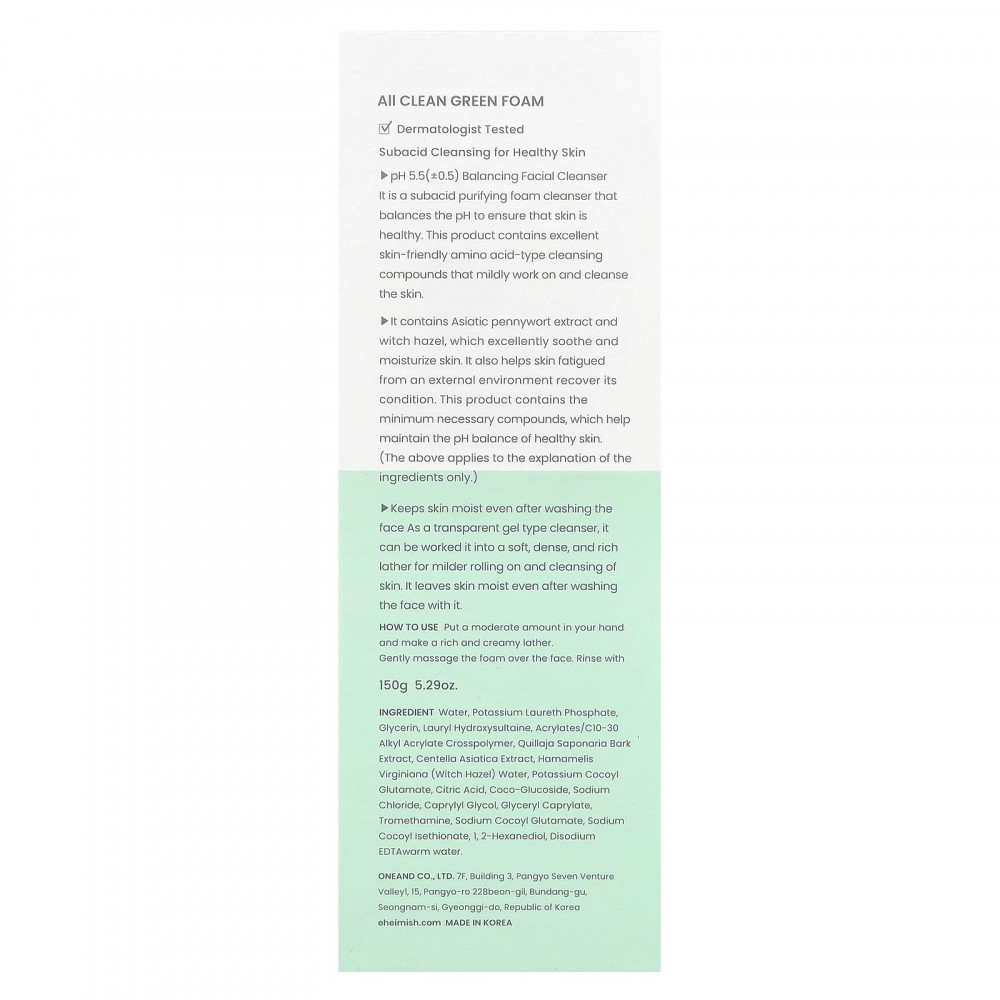 Балансирующее очищающее средство для лица с pH 5,5 (± 0,5). Это слабокислая очищающая пенка, которая уравновешивает уровень pH, обеспечивая здоровье кожи. Этот продукт содержит превосходные очищающие соединения аминокислотного типа, которые мягко воздействуют на кожу и очищают ее.