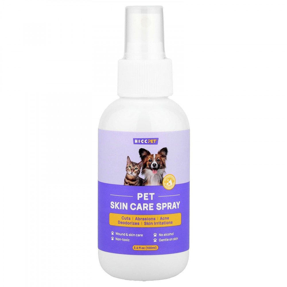 Спрей для ухода за кожей домашних животных HICC Pet® предназначен для ухода за сыпью на неповрежденной коже, а также с небольшими ссадинами, порезами, раздражениями, порезами и ожогами. Его можно использовать для собак и кошек, и в целом он считается безопасным при слизывании животным.