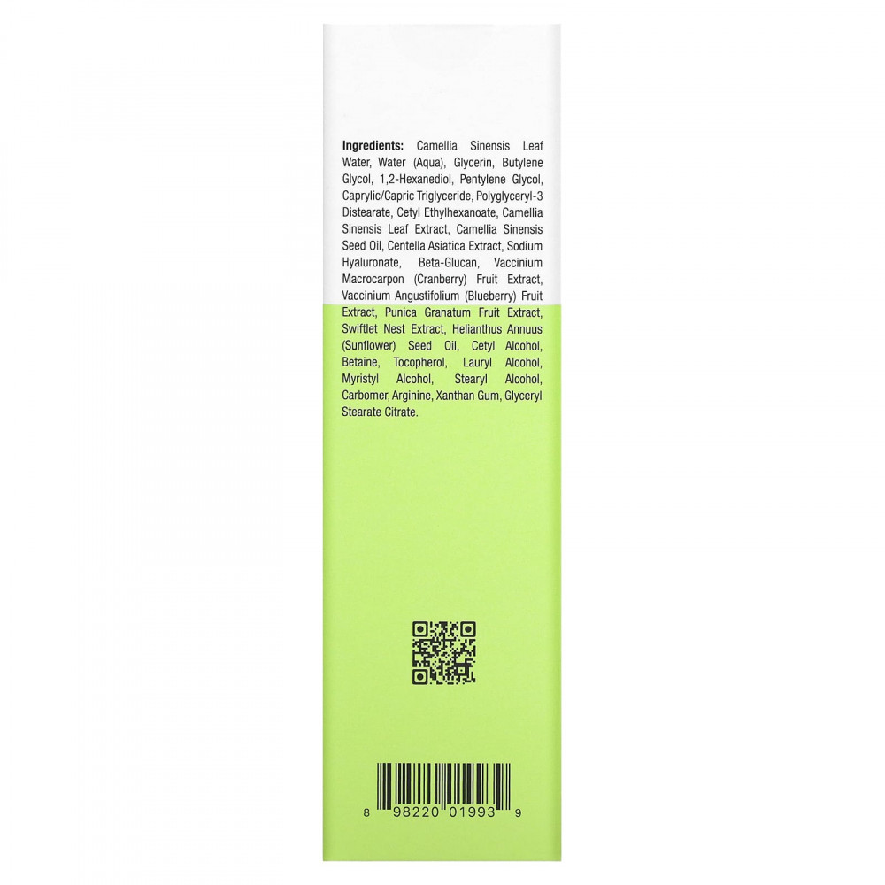 вода из листьев зеленого чая (Camellia sinensis), вода (Aqua), глицерин, бутиленгликоль, 1,2-гександиол, пентилен гликоль, каприловый/каприновый триглицерид, полиглицерил-3 дистеарат, цетилэтилгексаноат, экстракт листьев зеленого чая (Camellia sinensis), масло из семян зеленого чая (Camellia sinensis), экстракт готу колы (Centella asiatica), гиалуронат натрия, бета-глюкан, экстракт плодов клюквы (Vaccinium macrocarpon), экстракт ягод голубики (Vaccinium angustifolium), экстракт плодов граната (Punica granatum), экстракт гнезда саланганы, подсолнечное масло (Helianthus annuus), цетиловый спирт, бетаин, токоферол, лауриловый спирт, миристиловый спирт, стеариловый спирт, карбомер, аргинин, ксантановая камедь, глицерил стеарат цитрат.