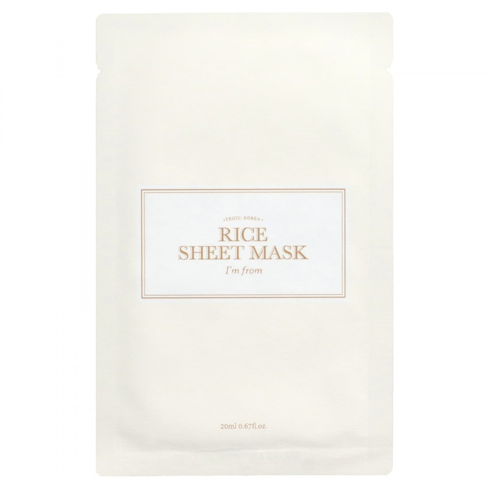 Рисовая тканевая маска I'm From: 1. После очищения нанесите тоник, чтобы разгладить кожу. 2. Нанесите маску на лицо. 3. Снимите через 10-20 минут и аккуратно похлопывающими движениями распределите остатки эссенции для лучшего впитывания.