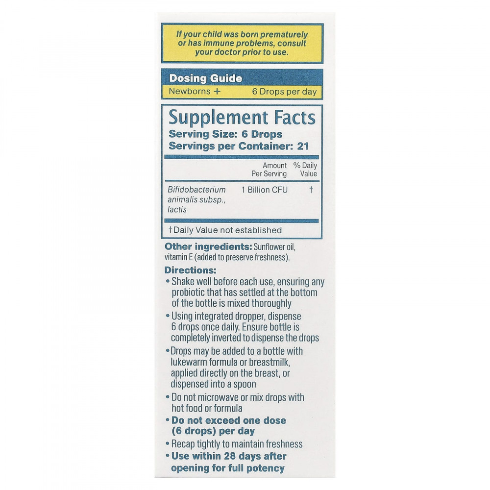Полезные бактерии в ежедневных каплях с пробиотиком для младенцев помогают сбалансировать баланс полезных бактерий в кишечнике, чтобы способствовать здоровью пищеварительной системы, а также помогают сохранять здоровье ребенка, поддерживая иммунную систему.
