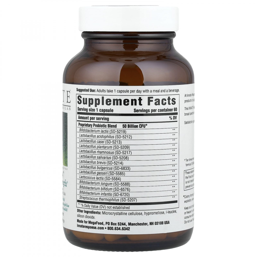 Этот продукт INNATE Response изготовлен из широкого спектра поддерживающих здоровье пробиотиков.