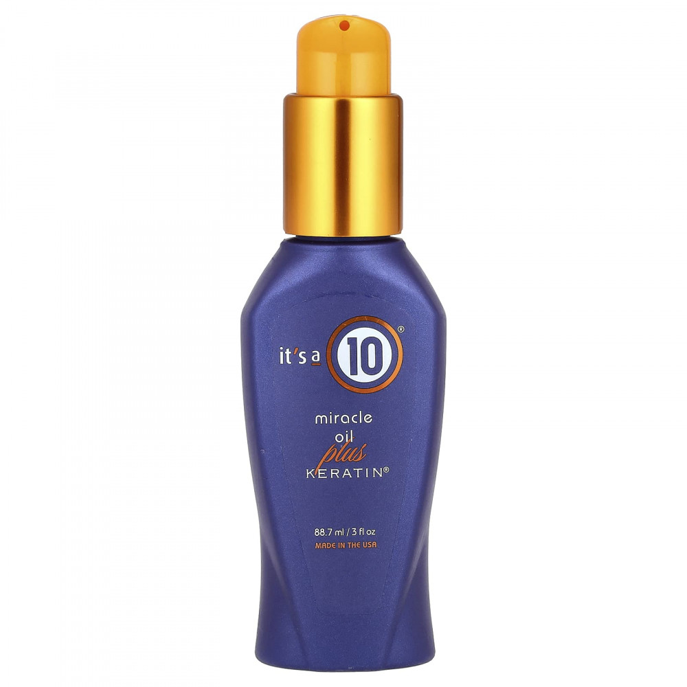Кератин 10 Miracle Oil Plus обеспечивает потрясающие результаты для тех, кто нуждается в дополнительном увлажнении волос. При использовании до или сразу после укладки кератин It's a 10 Miracle Oil Plus обеспечивает сияющий и неповторимый блеск. Miracle Oil - это легкий, нежирный способ получить многочисленные преимущества протеина кератина в сочетании с другими натуральными питательными веществами. Всего несколько капель помогут избавиться от пушения, защитить цвет волос и даже от воздействия высоких температур, добавив при этом блеска.
