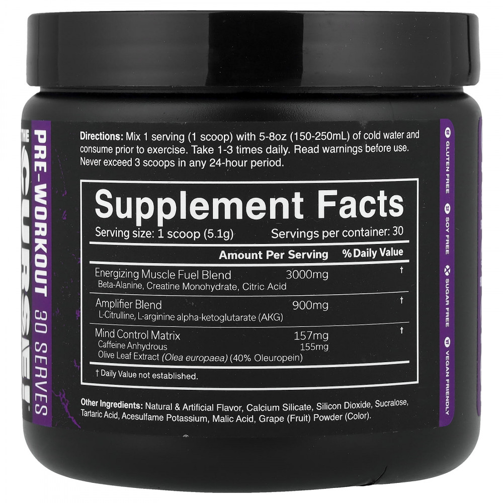 Всегда оценивайте свою переносимость с помощью одной мерной ложки. Этот продукт предназначен только для здоровых взрослых людей в возрасте старше 18 лет. Продукт не предназначен для людей с уже имеющимися заболеваниями, принимающих лекарства, детей младше 18 лет, беременных и кормящих женщин, а также лиц, чувствительных к кофеину или бета-аланину. Прекратите использование и обратитесь к врачу, если у вас возникнут какие-либо побочные реакции на этот продукт. Не употреблять вместе с кофеином, алкоголем или стимуляторами из других источников. Во избежание бессонницы не употребляйте в течение 4 часов до сна. Может возникнуть кратковременное безобидное покалывание кожи. Не следует использовать продукт, если защитная пленка повреждена или отсутствует.