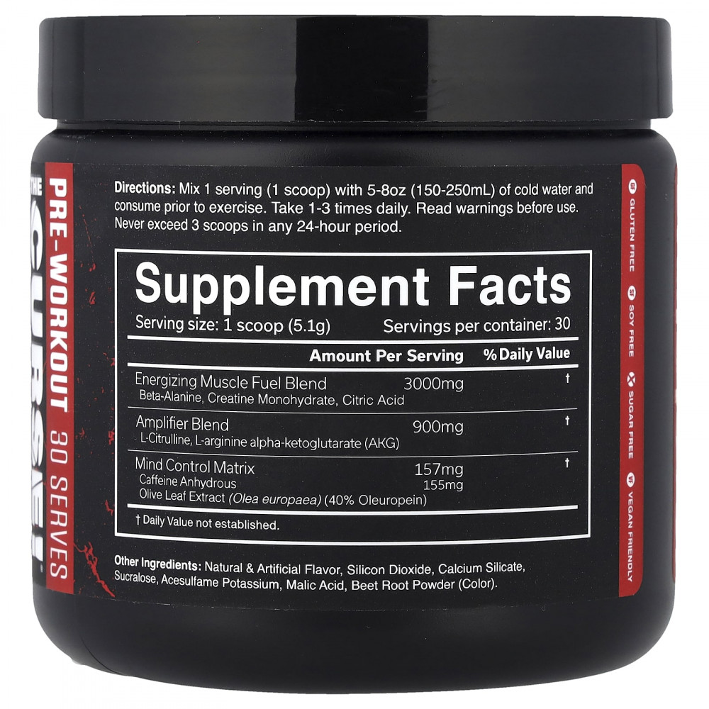 Всегда оценивайте свою переносимость с помощью одной мерной ложки. Этот продукт предназначен только для здоровых взрослых людей в возрасте старше 18 лет. Продукт не предназначен для людей с уже имеющимися заболеваниями, принимающих лекарства, детей младше 18 лет, беременных и кормящих женщин, а также лиц, чувствительных к кофеину или бета-аланину. Прекратите использование и обратитесь к врачу, если у вас возникнут какие-либо побочные реакции на этот продукт. Не употреблять вместе с кофеином, алкоголем или стимуляторами из других источников. Во избежание бессонницы не употребляйте в течение 4 часов до сна. Может возникнуть кратковременное безобидное покалывание кожи. Не следует использовать продукт, если защитная пленка повреждена или отсутствует.