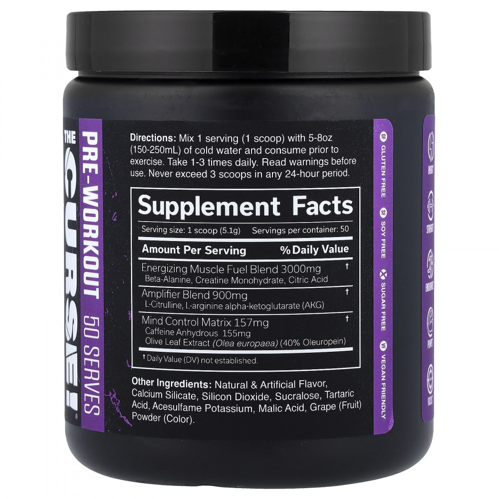 Всегда оценивайте свою переносимость с помощью одной мерной ложки. Этот продукт предназначен только для здоровых взрослых людей в возрасте старше 18 лет. Не для использования людьми с уже существующими заболеваниями или теми, кто принимает какие-либо препараты, детьми в возрасте до 18 лет, беременными или кормящими женщинами, а также лицами, чувствительными к кофеину или бета-аланину. Немедленно прекратите использование и обратитесь к медицинскому работнику, если у вас возникнут какие-либо побочные реакции на этот продукт. Не употребляйте вместе с кофеином, алкоголем или стимуляторами из других источников. Принимайте не позднее, чем за 4 часа до сна, чтобы не вызвать бессонницу. Вы можете испытать безобидное кратковременное покалывание кожи. Не следует использовать продукт, если защитная пленка повреждена или отсутствует.