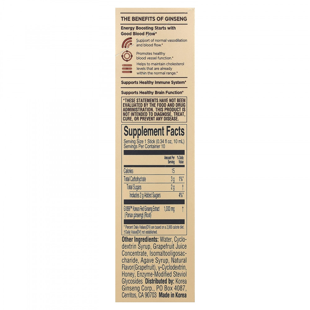 Примечания. Перед применением добавки во время беременности, кормления грудью или приема препаратов следует проконсультироваться с медицинским работником. Убедитесь в отсутствии аллергии и побочных реакций на каждый ингредиент. Употребить сразу после открытия. Содержит экстракт корня корейского красного женьшеня, выращенного не более 6 лет. Хранить в сухом и прохладном месте, избегать попадания солнечных лучей и влаги. Может наблюдаться осадок, он абсолютно безвреден и не влияет на эффективность и качество средства. Не нагревайте стик в микроволновой печи. Будьте осторожны при вскрытии стика: он имеет острые края.