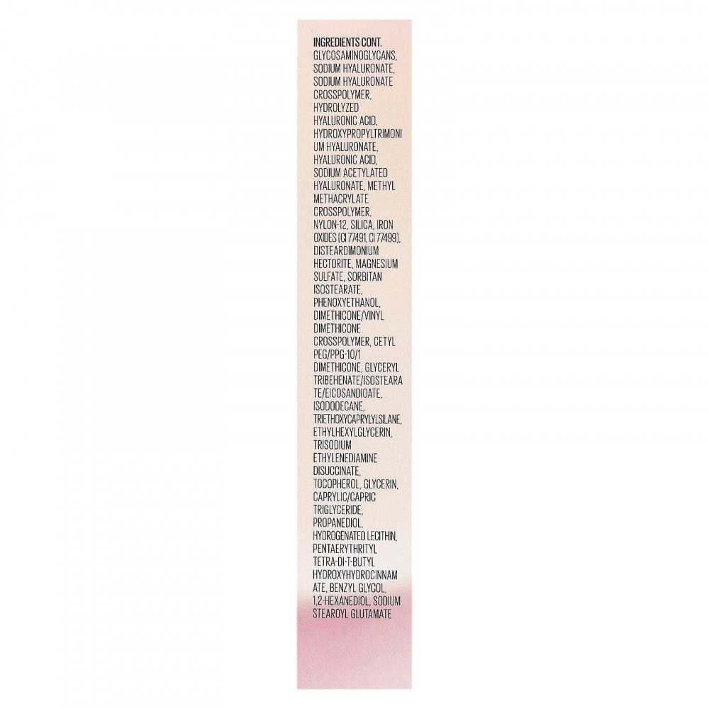 Вода, циклопентасилоксан, диоксид титана (CI 77891), диметикон, бутиленгликоль, цетилэтилгексаноат, дикаприлил карбонат, ПЭГ-10 диметикон, оксиды железа (CI 77492), триметилсилоксисиликат, каприлил метикон, пентилен гликоль, пантенол, керамид NP, гидролизованные гликозаминогликаны, гиалуронат натрия, гиалуронат натрия кроссполимер, гидролизованная гиалуроновая кислота, гиалуронат гидроксипропилтримония, гиалуроновая кислота, ацетилированный гиалуронат натрия, метил метакрилат кроссполимер, нейлон-12, диоксид кремния, оксиды железа (CI 77491, CI 77499), дистеардимония гекторит, сульфат магния, сорбитан изостеарат, феноксиэтанол, диметикон/винил диметикон кроссполимер, цетил ПЭГ/ППГ-10/1 диметикон, глицерил трибегенат/изостеарат/эйкозандиоат, изододекан, триэтоксикаприлилсилан, этилгексилглицерин, тринатрий этилендиамин дисукцинат, токоферол, глицерин, каприловый/каприновый триглицерид, пропандиол, гидрогенизированный лецитин, пентаэритритил тетра-ди-трет-бутил гидроксигидроциннамат, бензилгликоль, 1,2-гександиол, натрия стеароил глутамат.