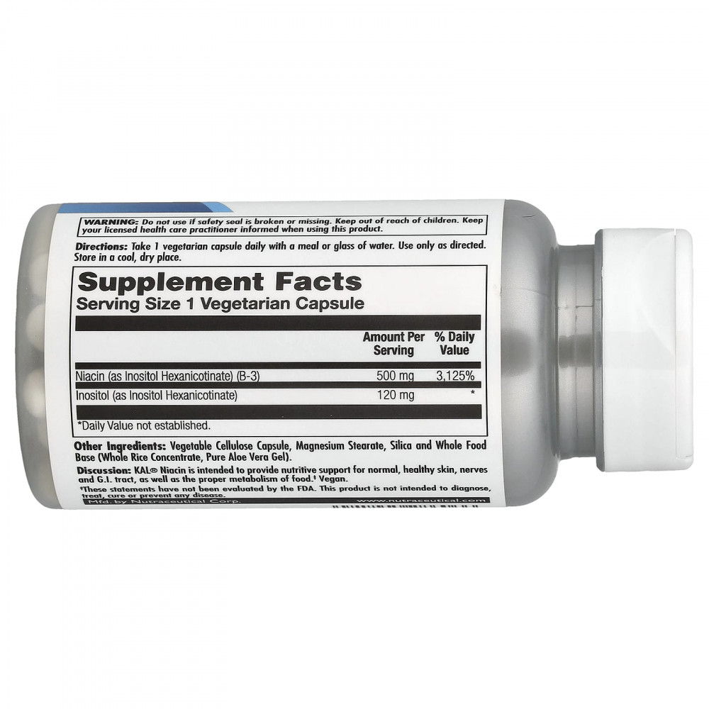 Описание. Ниацин KAL® предназначен для обеспечения питательной поддержки нормальной и здоровой кожи, нервов и желудочно-кишечного тракта, а также правильного обмена веществ.