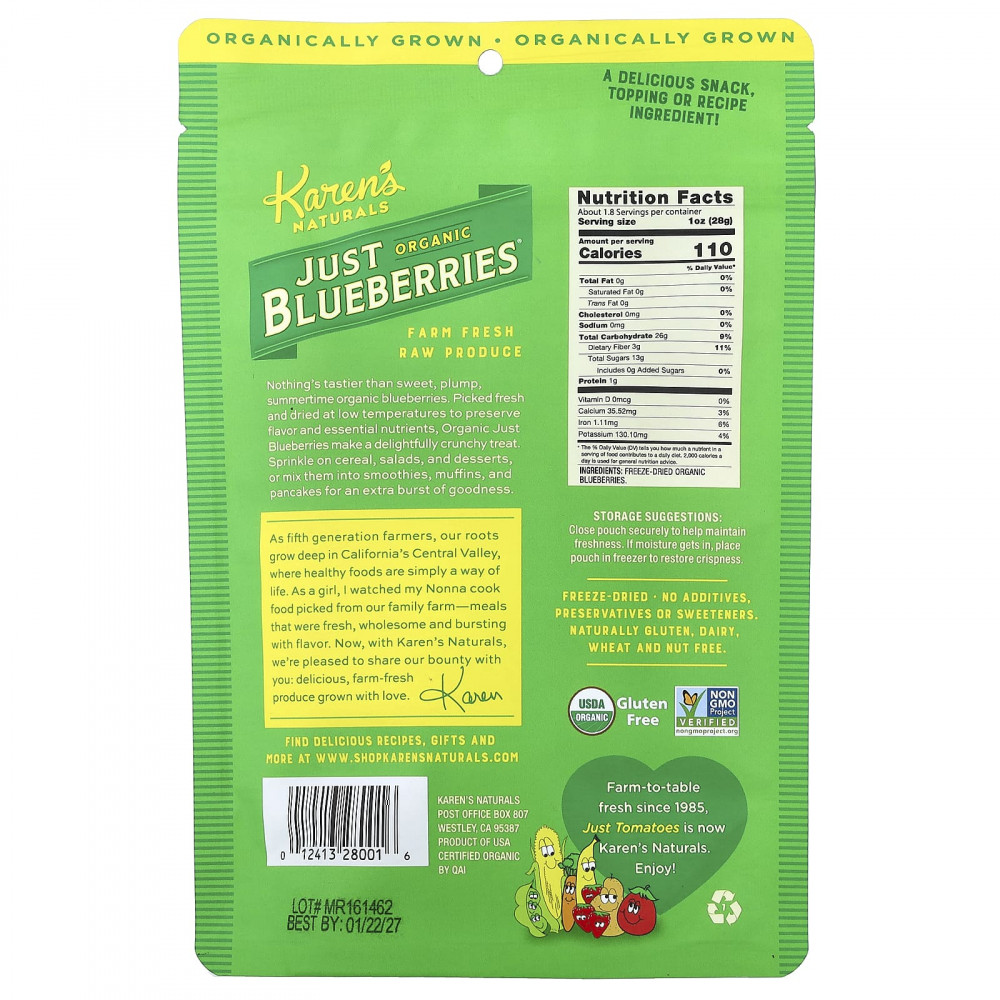 Нет ничего вкуснее сладкой, сочной, летней органической голубики. Органическая голубика Just, собранная в свежем виде и высушенная при низких температурах для сохранения вкуса и необходимых питательных веществ, представляет собой восхитительное хрустящее лакомство. Посыпайте хлопья, салаты и десерты или добавляйте их в смузи, кексы и блины для дополнительного вкуса.