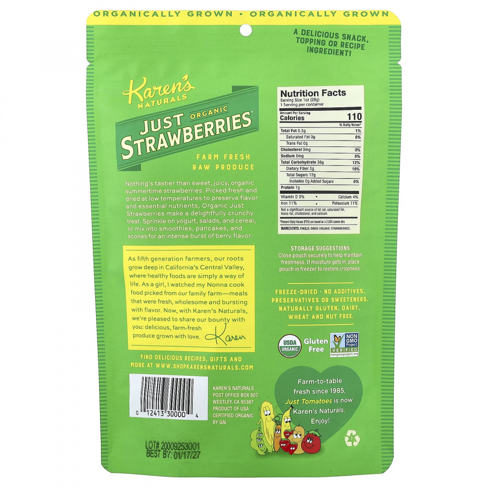 Нет ничего вкуснее, чем сладкая и сочная органическая клубника. Органическая клубника Just, собранная в свежем виде и высушенная при низких температурах для сохранения вкуса и необходимых питательных веществ, представляет собой восхитительное хрустящее лакомство.