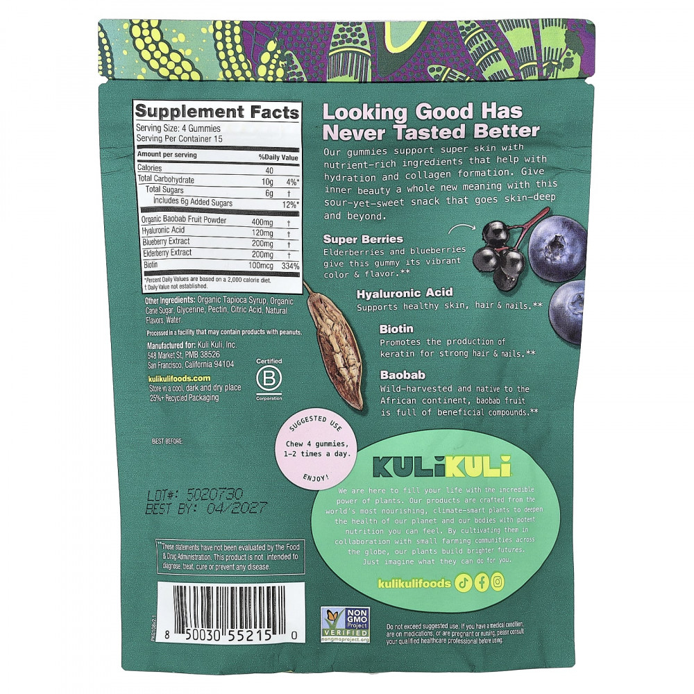 Наши жевательные таблетки поддерживают превосходную кожу с помощью богатых питательными веществами ингредиентов, которые способствуют увлажнению и образованию коллагена. Придайте внутренней красоте совершенно новое значение с помощью этого кислого, но сладкого снека, который проникает в кожу глубоко.