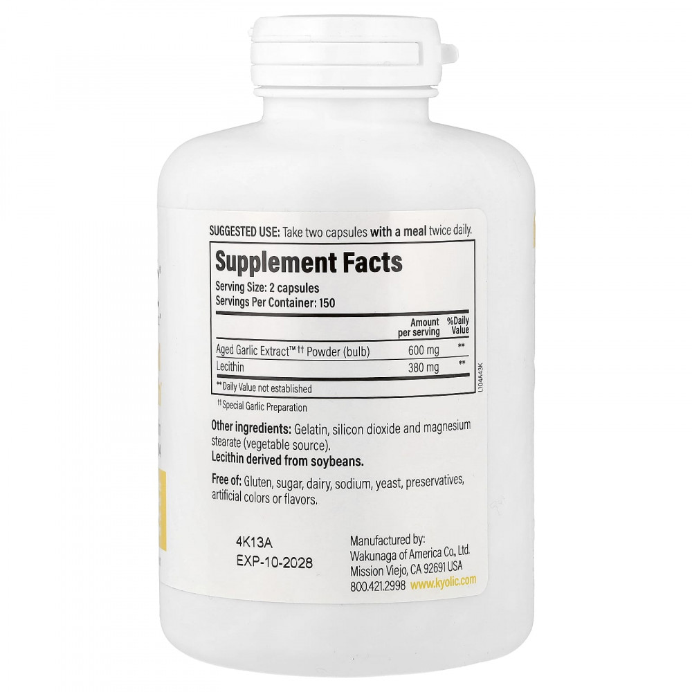 Выдержанный экстракт чеснока Aged Garlic Extract™ (AGE) от Kyolic® производится из органически выращенного чеснока. Он выдерживается с использованием запатентованного процесса для удаления вызывающих запах соединений, которые характерны для сырого чеснока, что увеличивает биодоступность полезных соединений.