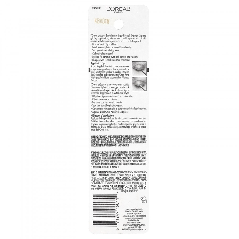 Советы по применению: Наносите по линии роста ресниц, начиная от внутренних уголков глаз, двигаясь к периферии. Для создания дымчатого образа аккуратно растушуйте линию с помощью растушевки. Легко удаляется водой с мылом или водостойким средством для снятия макияжа с глаз L'Oreal Paris.