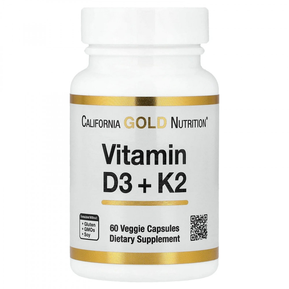 Добавка с витаминами D3 и K2 от California Gold Nutrition® содержит комбинацию витаминов D3 и K2 (в виде менахинона-4), незаменимых питательных веществ, необходимых для ведения здорового образа жизни, в простой и удобной форме растительных капсул.