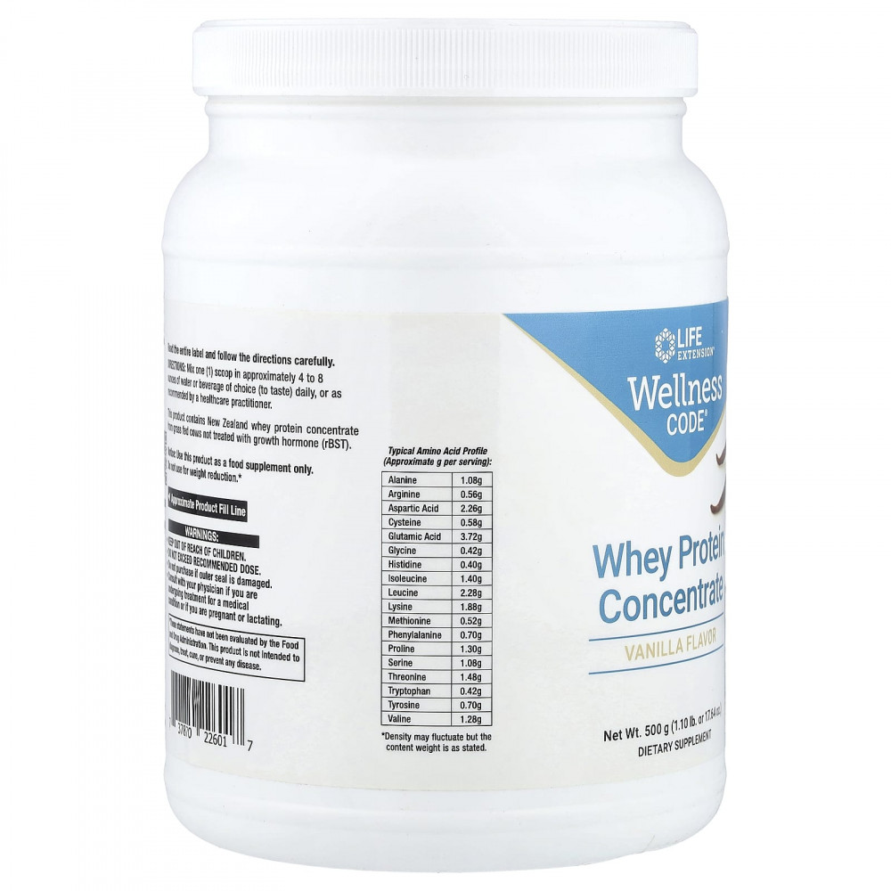 Концентрат сывороточного протеина Wellness Code® производится от коров, выращенных на травяном откорме, никогда не получавших гормоны роста, и содержит много белка и аминокислот с разветвленной цепью (BCAA) в каждой мерной ложке.