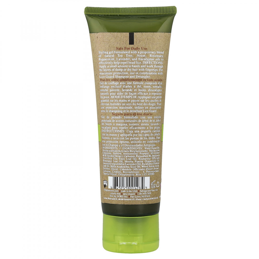 Гель для укладки волос разработан на основе запатентованной смеси натуральных масел чайного дерева, нима, розмарина, перечной мяты, лаванды и эвкалипта, которые эффективно помогают отпугивать вшей.
