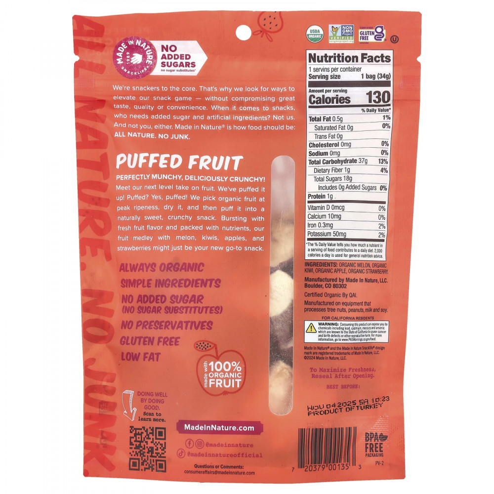 Безупречно аппетитные, восхитительно хрустящие! Встречайте наш новый взгляд на фрукты. Мы надули! Пыхтел? Да пыхтел! Мы собираем органические фрукты на пике спелости, сушим их, а затем превращаем в сладкую хрустящую закуску. Наша фруктовая смесь с ароматом свежих фруктов и питательными веществами может стать вашим новым перекусом.