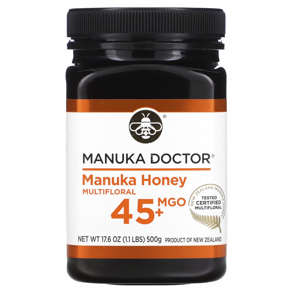 Компания Manuka Doctor специализируется на производстве высококачественного меда манука из Новой Зеландии. Этот продукт соответствует стандарту, установленному правительством Новой Зеландии для меда манука из разнотравья. Уровень метилглиоксаля подтвержден независимыми лабораториями Новой Зеландии. Гарантированно содержит не менее 45+ MGO = 45 мг/кг метилглиоксаля.