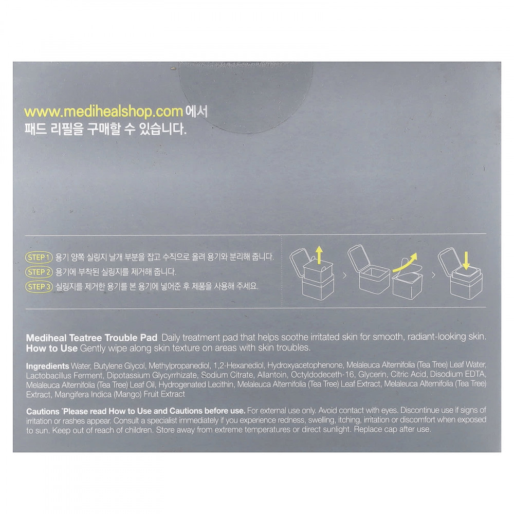 Салфетки для ежедневного ухода за проблемными участками кожи с чайным деревом Mediheal, которые помогают успокоить раздражённую кожу, делая её гладкой и сияющей.