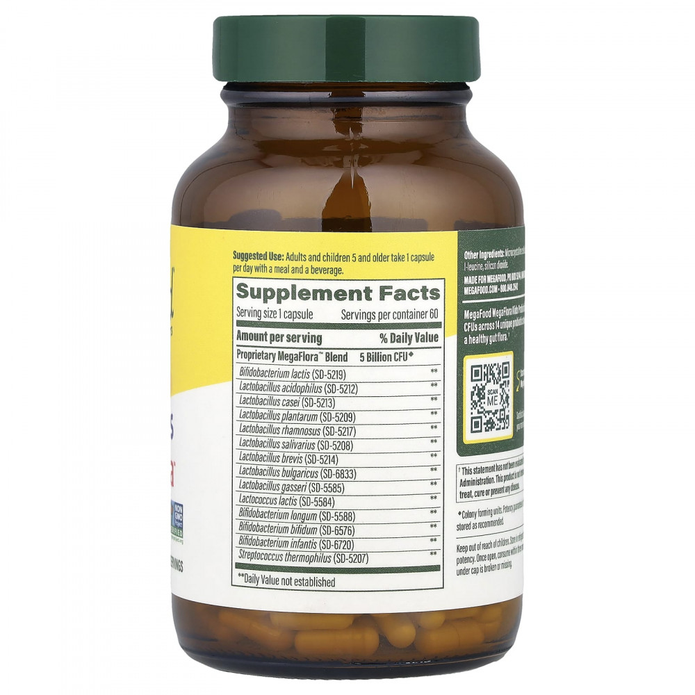 Пробиотики для детей MegaFood MegaFlora содержат 5 млрд КОЕ, включая 14 уникальных штаммов пробиотиков, которые поддерживают здоровую микрофлору кишечника.
