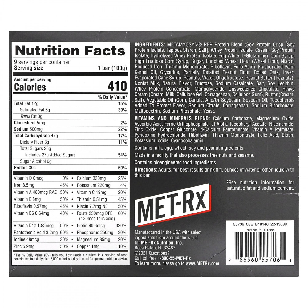 Протеиновая смесь pbp METAMYOSYN® (рассыпчатый соевый белок [изолят соевого белка, тапиоковый крахмал, соль], изолят сывороточного протеина, казеина, изолят соевого белка, гидролизованный изолят сывороточного протеина, яичный белок, l-глютамин), кукурузный сироп, кукурузного сиропа с высоким содержанием фруктозы, сахара, обогащенная пшеничная мука (пшеничная мука, ниацин, восстановленное железо, мононитрат тиамина, рибофлавин, фолиевая кислота), фракционированное пальмоядровое масло, глицерин, частично обезжиренная арахисовая мука, плющеная овсянка, инвертированный тростниковый сироп, арахиса, вода, олигофруктоза, арахисовая паста (арахис), обезжиренное молоко, натуральный ароматизатор, фруктоза, казеинат натрия, соль, соевый лецитин, концентрат сывороточного протеина, моноглицерид, горький шоколад, жирные сливки, молока, целлюлозный гель, каррагинан, целлюлозная камедь), масло (сливки, соль), растительное масло (кукурузное, канолы, и / или сои), соевое масло, токоферолы добавлены для защиты вкуса, цитрат натрия, каррагинан, бикарбонат натрия, мальтодекстрин, фосфат натрия, дрожжи.