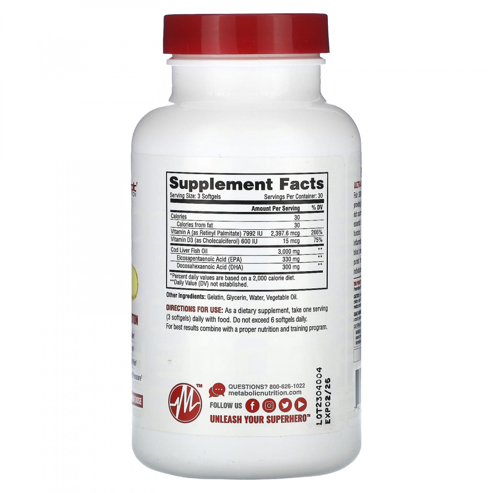 Fish 3000 — это экстракт жира печени атлантической трески ультрахолодного отжима, обеспечивающий неденатурированное чистое экстрактное масло высочайшего качества, содержащее богатые источники витаминов A и D, а также жирные кислоты омега-3. Рыба 3000 — это незаменимые жирные кислоты, которые помогают улучшить здоровье глаз, работу мозга, увеличить плотность и прочность костей, помочь уменьшить воспаления, поддерживать здоровый уровень холестерина и помочь снизить артериальное давление. Fish 3000 содержит 3000 мг самого чистого из доступных видов рыбьего жира. Продукт специально разработан для тех людей, которые хотят укрепить свое здоровье и хорошее самочувствие.