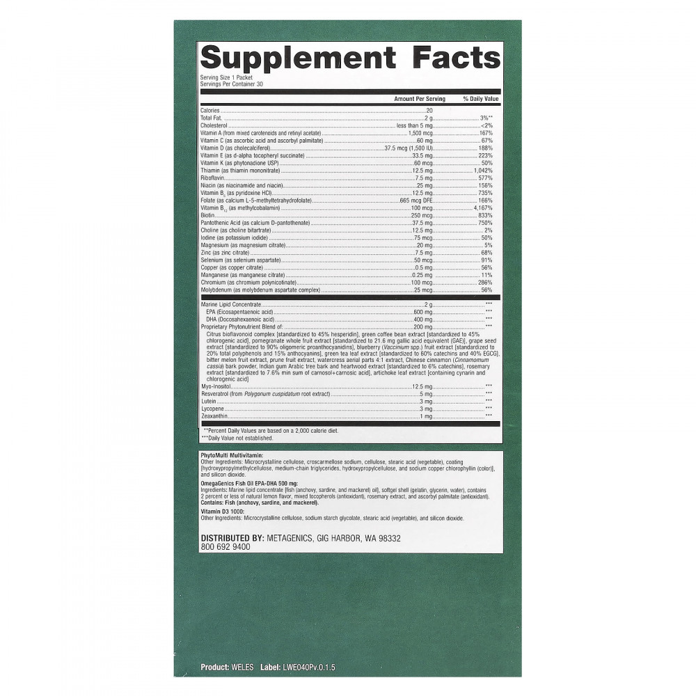 Каждый пакетик для приема один раз в день содержит: Комплексная поддержка здоровья. Мультивитамины PhytoMulti® - это "умный мультивитаминный комплекс" с незаменимыми питательными веществами и запатентованной смесью из 13 концентрированных экстрактов и фитонутриентов, которые помогают поддерживать здоровье клеток и хорошее самочувствие.
