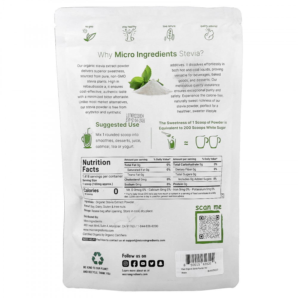 Сладость 1 мерной ложки порошка эквивалентна 200 мерным ложкам белого сахара.