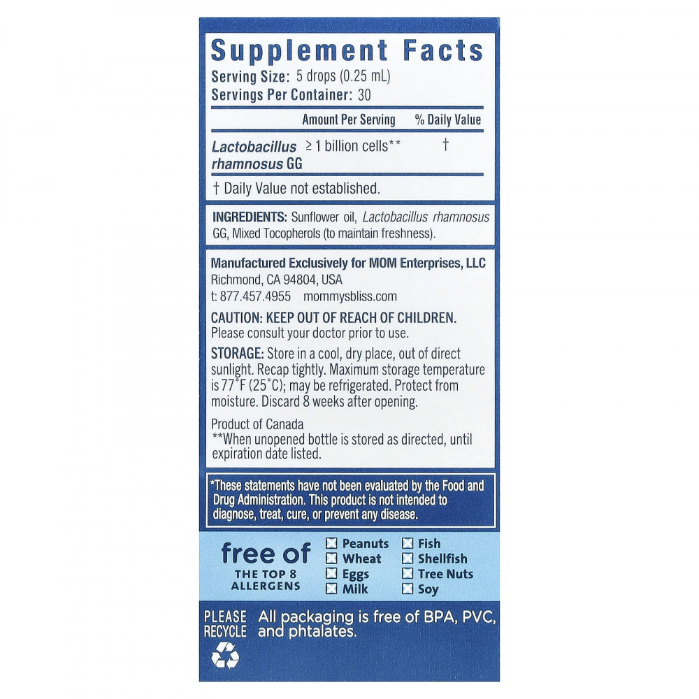 Снимите оригинальную крышку с флакона и замените ее прилагаемой пипеткой и белым защитным колпачком. Поверните пипетку по часовой стрелке, чтобы обеспечить плотное прилегание к флакону. Перед применением наденьте пластиковый защитный колпачок на резиновую пипетку и энергично встряхните флакон, чтобы растворить пробиотики. Снимите колпачок с пипетки, слегка повернув его против часовой стрелки. Переверните флакон и осторожно надавите на пипетку, чтобы получить 5 капель ежедневной порции. Введите непосредственно в рот младенцу, с помощью ложки, смешав с грудным молоком или смесью, или нанесите на грудь во время кормления. Не позволяйте младенцу сосать пипетку или брать ее в рот. Не добавляйте в горячую пищу или перед ее разогреванием, так как высокая температура повредит живые пробиотики. Плотно закрывайте продукт после каждого использования. Перед промыванием снимите пипетку и защитный колпачок. Пипетку и колпачок можно помещать в кипящую воду для дезинфекции.