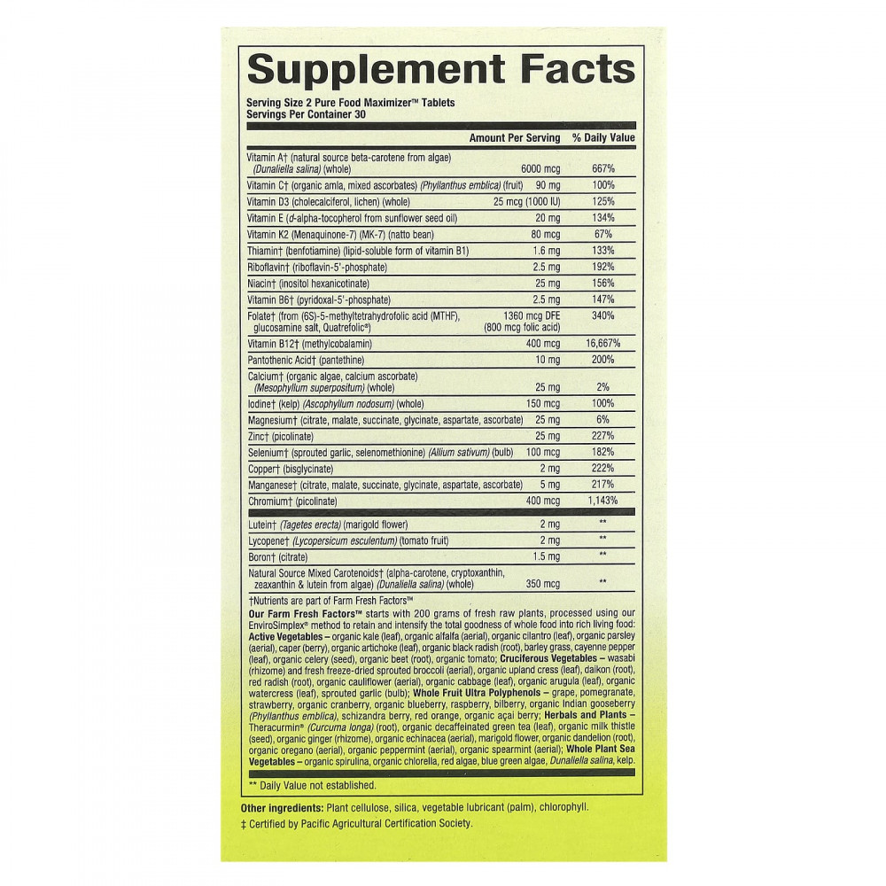 Полный цикл производства, упаковки и тестирования таблеток Pure Food Nutrient-Rich проводится в США и Канаде.