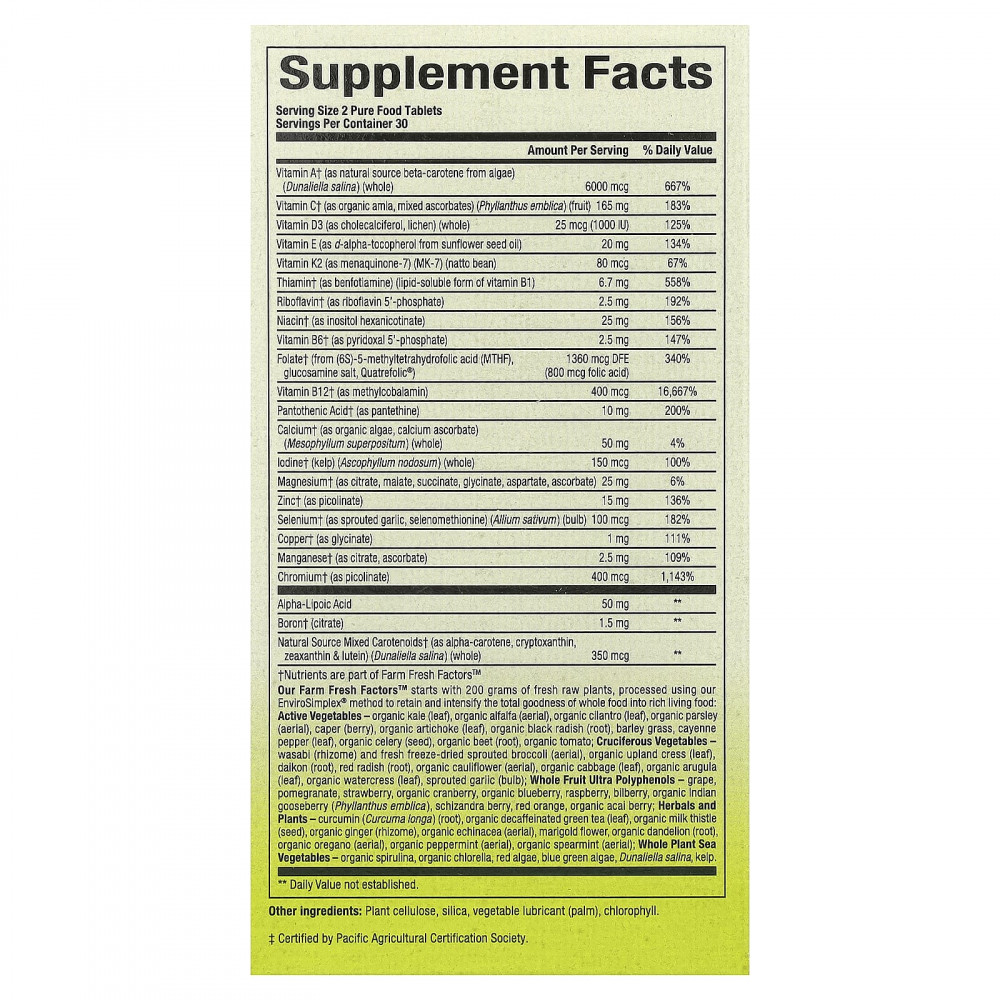 100% органические‡ растения, богатые питательными веществами без ГМО, выращенные на фермах Natural Factors, собирают на пике их роста и сразу же обрабатывают на наших собственных предприятиях с использованием нашего запатентованного метода EnviroSimplex® для сохранения жизненно важных биоэнергетических витаминов, минералов, ферментов, фитонутриентов. , антиоксиданты.