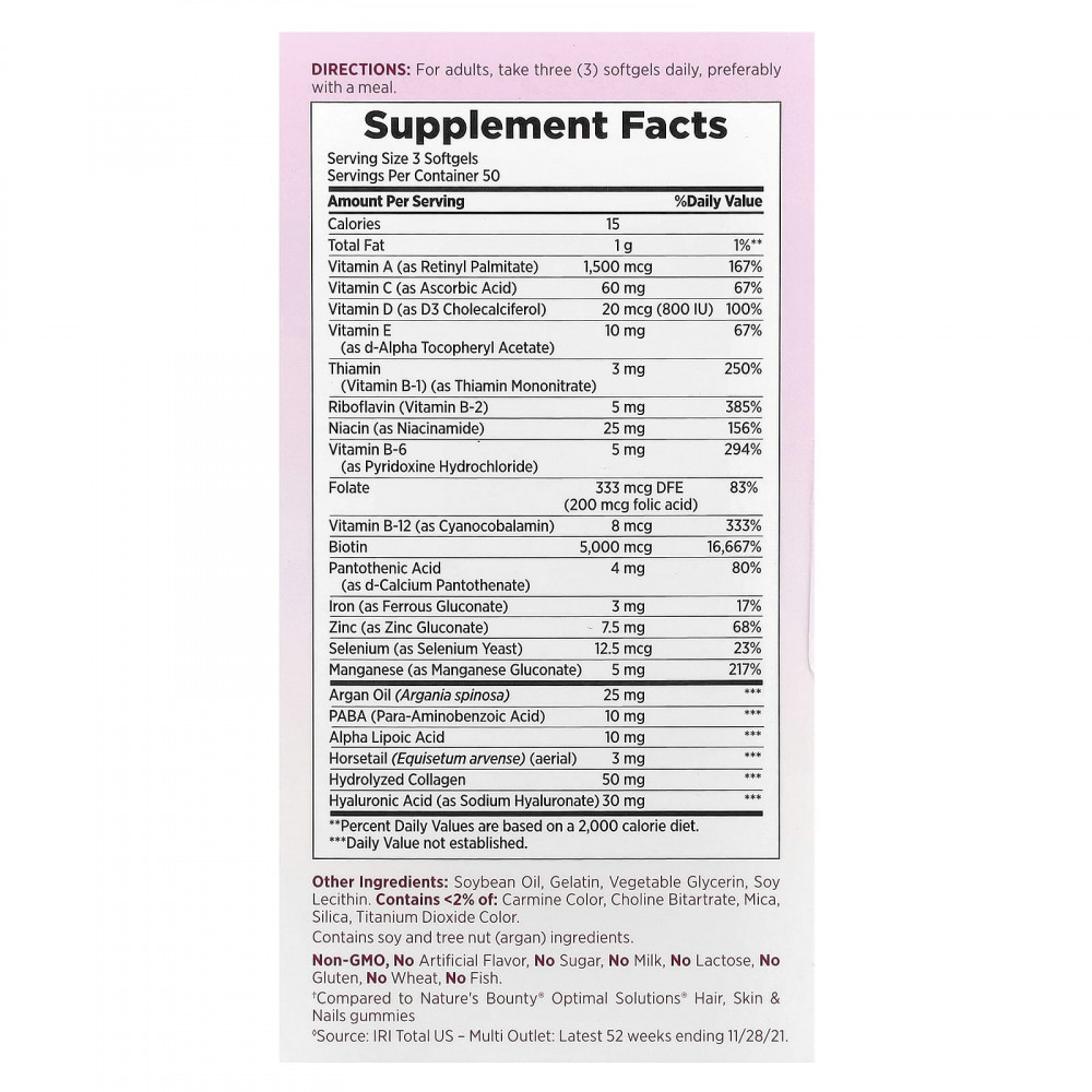 † По сравнению с жевательными таблетками для волос, кожи и ногтей Optimal Solutions® от Nature's Bounty®.