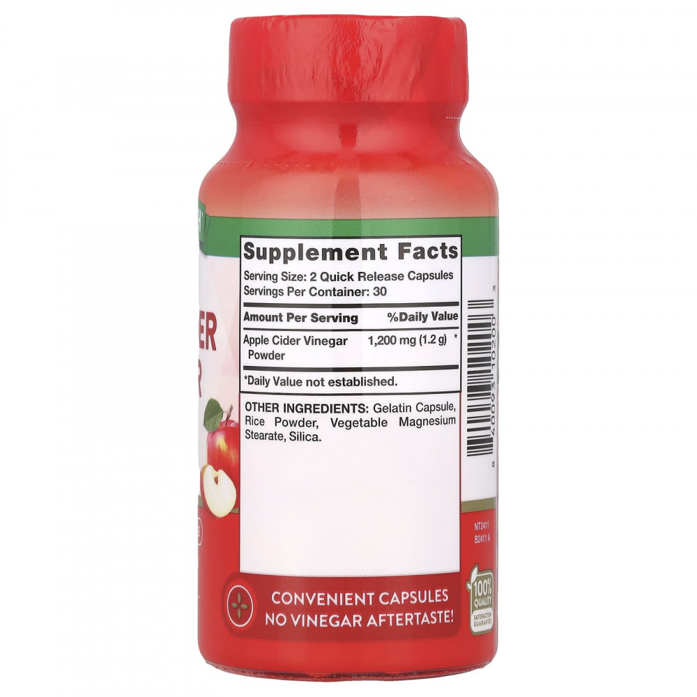 Каждая порция наших капсул яблочного уксуса тройной концентрации содержит 1200 мг порошка яблочного уксуса. Эти удобные капсулы - отличная альтернатива для тех, кому не нравится запах или послевкусие уксуса. Кроме того, этот недорогой флакон содержит 200 капсул с быстрым высвобождением, что дает вам 100 порций на флакон!