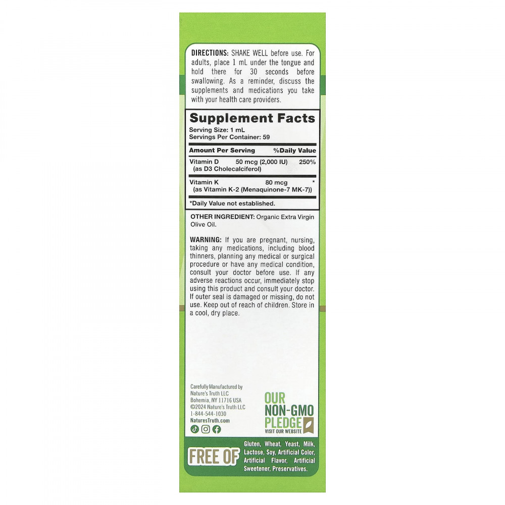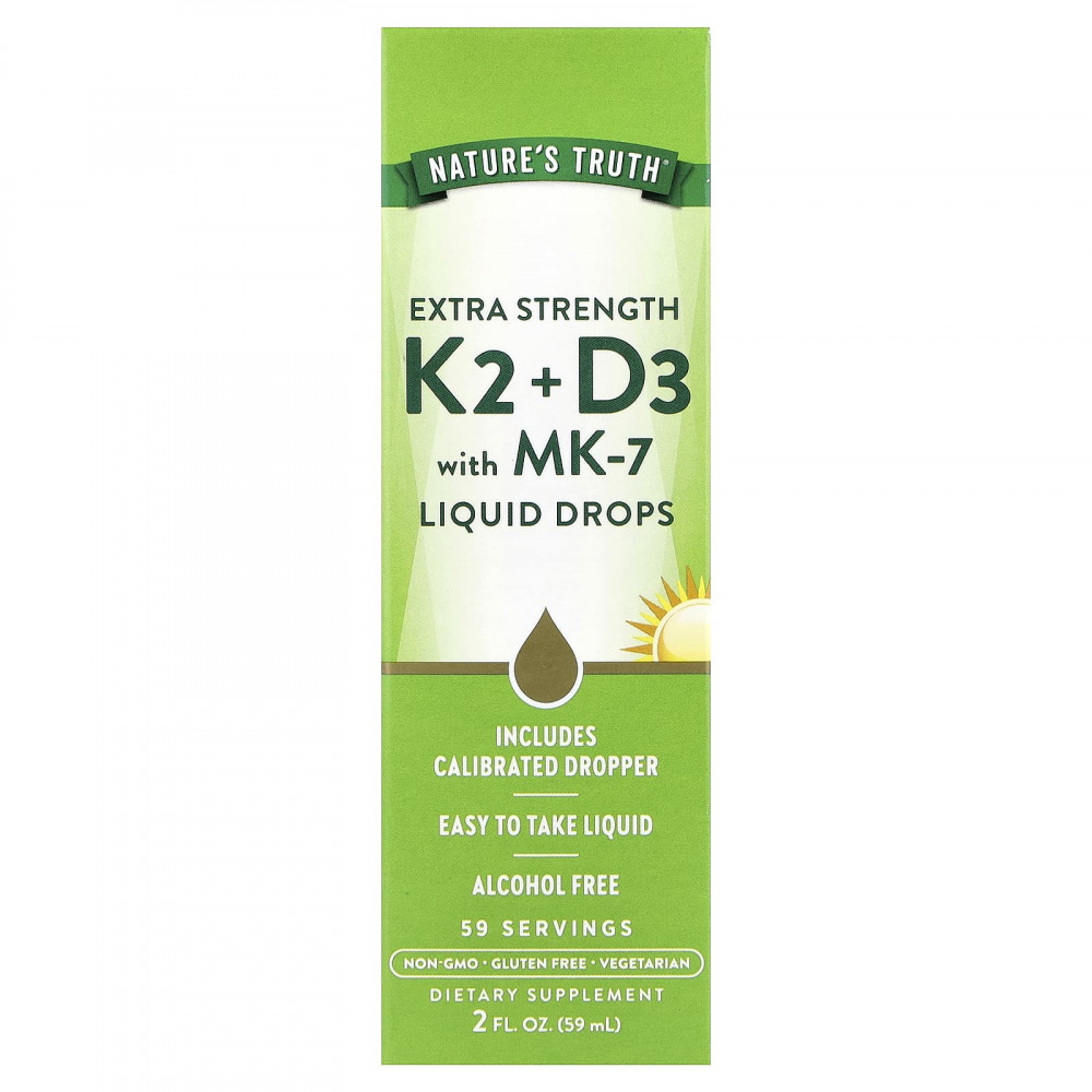 Витамины K2 и D3 — динамичный дуэт в этой быстродействующей жидкой формуле. Витамин K2, также известный как менахинон, естественным образом содержится в продуктах животного происхождения и ферментированных продуктах. Витамин D3 известен как «солнечный витамин» из-за естественной способности организма вырабатывать его после воздействия солнечного света.