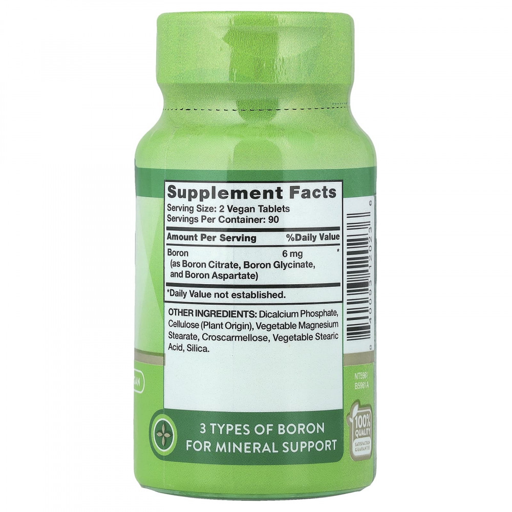 Таблетки с комплексом бора от Nature's Truth — это удобный способ дополнить свой рацион для тех, кто не употребляет регулярно много фруктов и овощей. Каждая порция, содержащая две таблетки в день, легко принимать и подходит для веганского образа жизни.