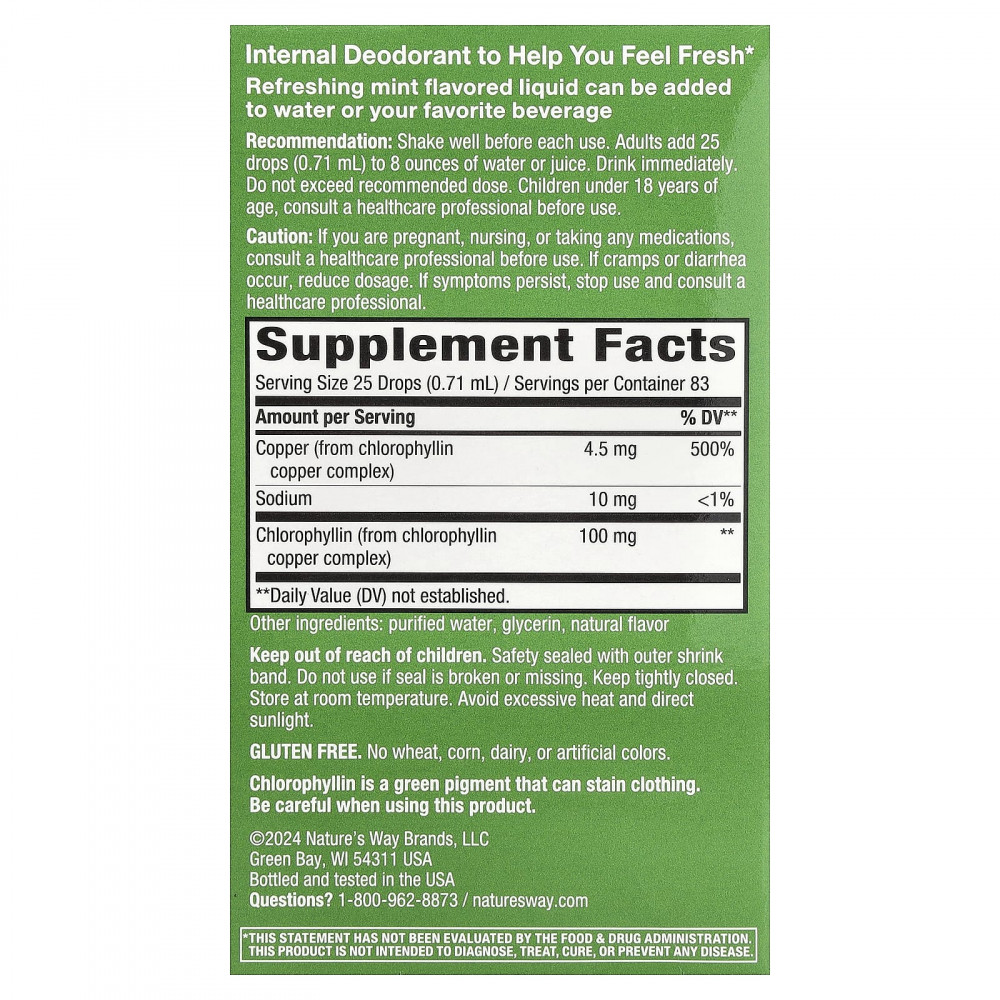 Хлорофиллин — это зеленый пигмент, который может оставлять пятна на одежде. Будьте осторожны при использовании этого продукта.