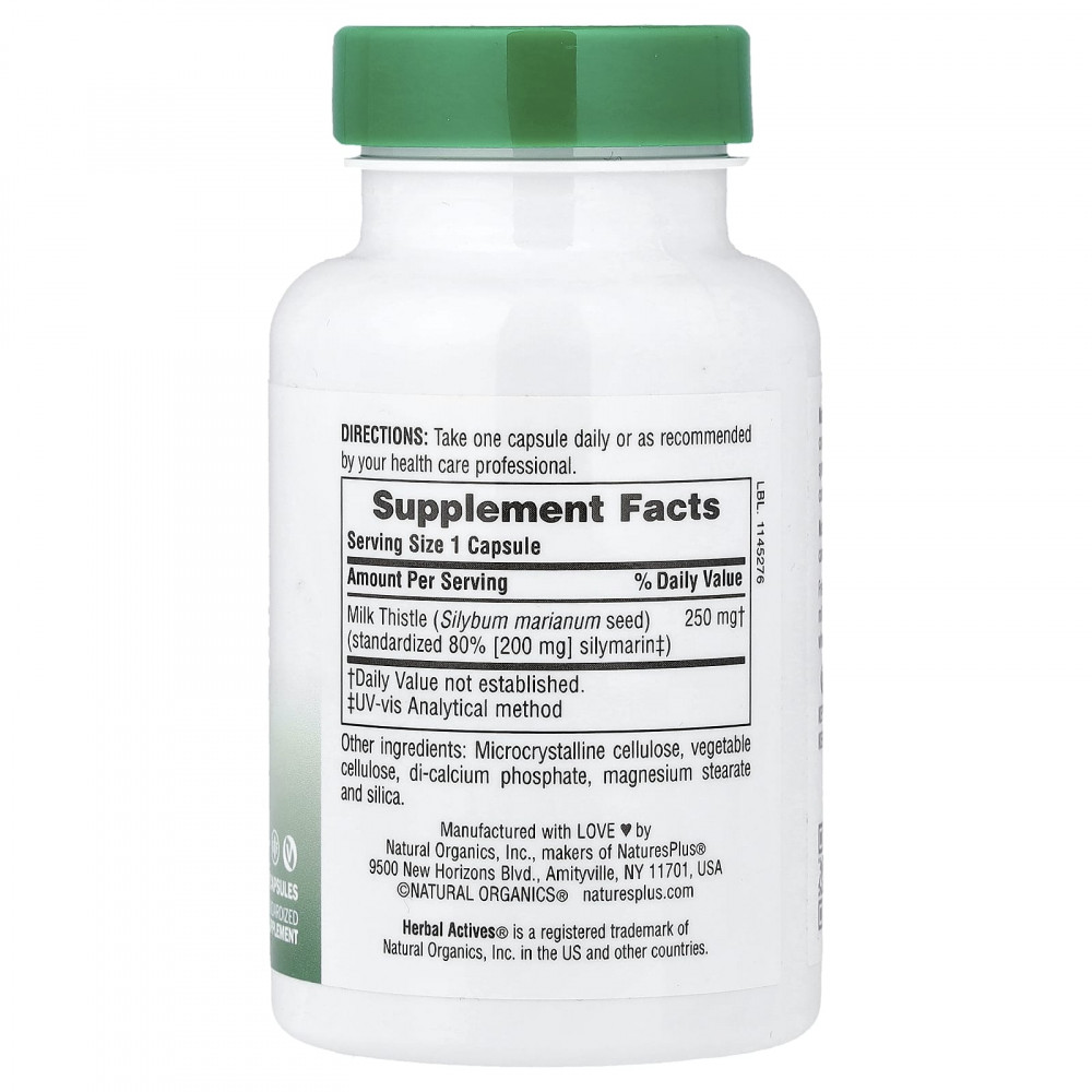 Расторопша от NaturesPlus® содержит концентрированные активные растительные ингредиенты, которые максимально усиливают синергетические преимущества цельных семян, которые естественным образом содержат силибин, силидианин и силихристин.
