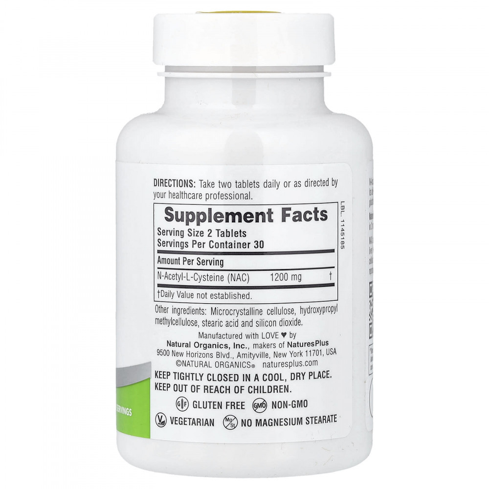NaturesPlus NAC 1200 обеспечивает эффективную ежедневную концентрацию в 2 небольших таблетках, которые легко глотать.