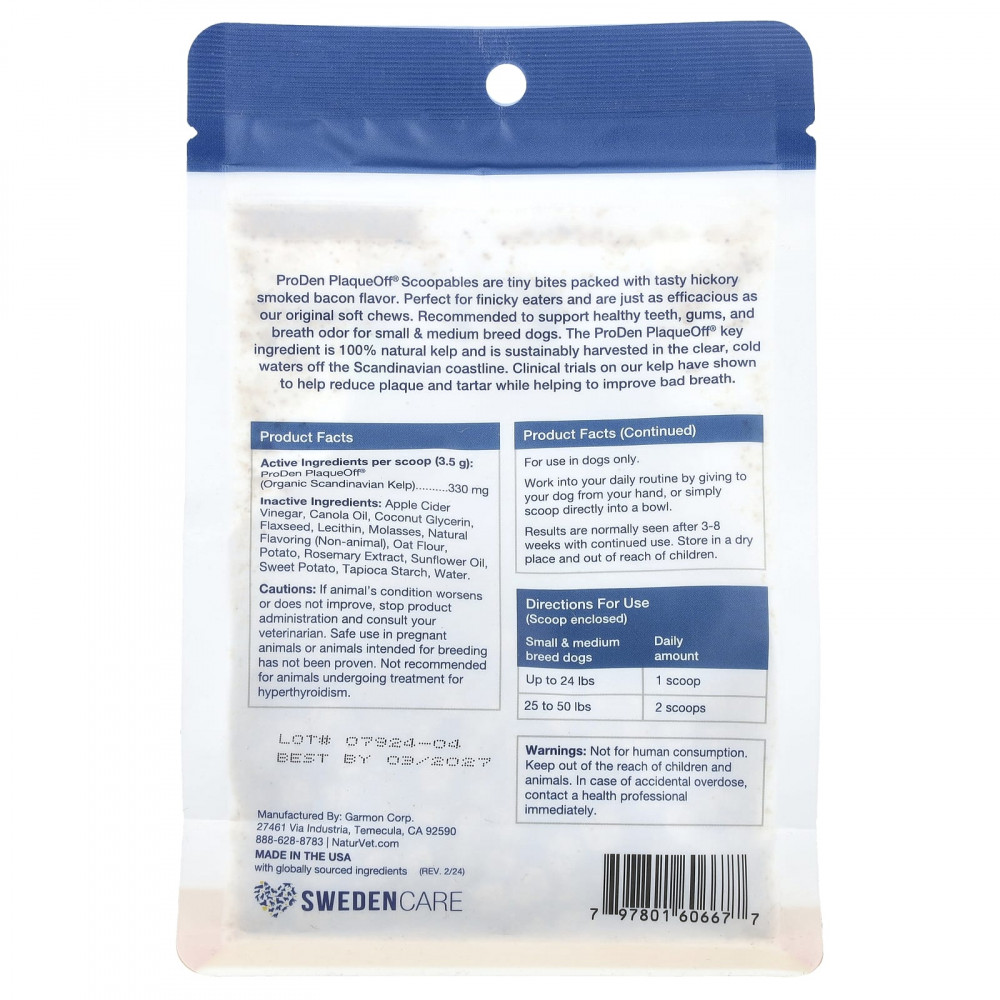 Таблетки с мерной ложкой ProDen PlaqueOff® — это крошечные кусочки, имеющие приятный вкус копченого бекона. Идеально подходит для привередливых едоков и так же эффективен, как и наши оригинальные мягкие жевательные таблетки. Рекомендуется для поддержания здоровья зубов и десен, а также устранения неприятного запаха изо рта у собак мелких и средних пород. Ключевой ингредиент ProDen PlaqueOff® — это 100% натуральные бурые водоросли, полученные экологичным способом в чистых и холодных водах у скандинавского побережья. Клинические испытания наших бурых водорослей показали, что они помогают уменьшить зубной налет и зубной камень, а также устраняют неприятный запах изо рта.